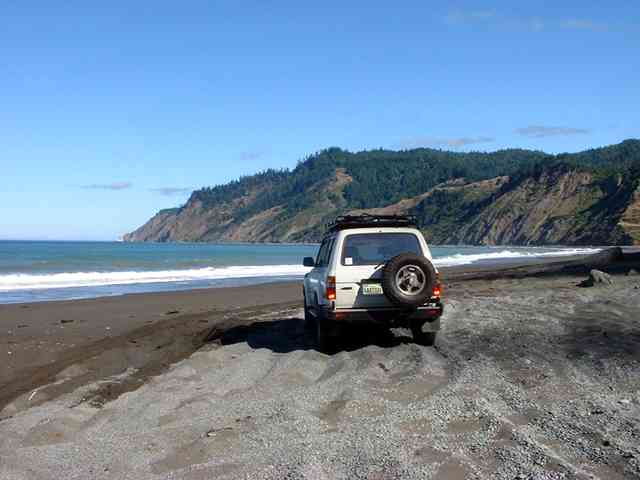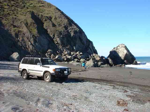 One of the last photo ops - a chance to stop and take photos of Usal Beach - previous picture. Nice tyres ;-) The cruiser got a lot of positive stares and comments while we were camped at Usal - the snorkel was the source of puzzled looks...