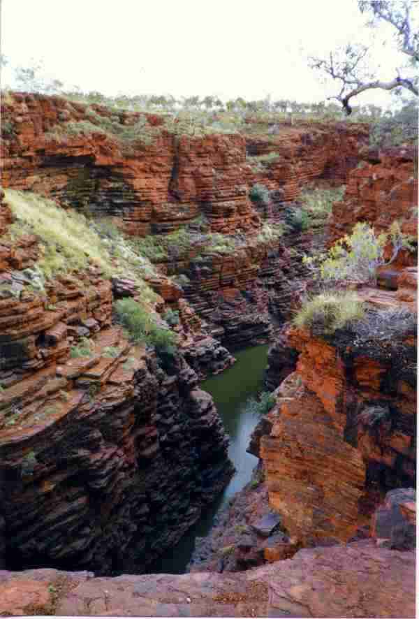 The following picture is a view from the lookout at Joffre Falls (the falls are in the other direction). There are many gorges in this national park, each has it's own character and most of them are reasonably accessible, i.e. you can climb down to the base. Many of them are linked together and you can swim/airbed ride down quite a few - the water is generally quite cold because it is so shaded from the sun.
